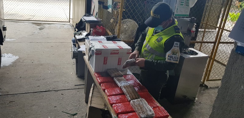 cava de icopor que transportaba el narcótico, venía rotulada, lo cual daba una