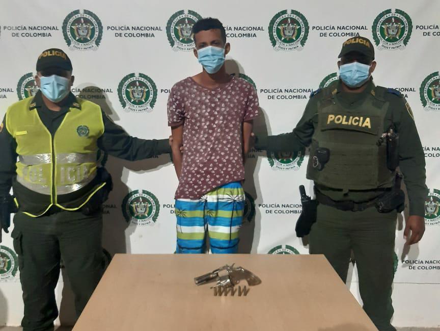 encuentran en su poder un arma de fuego tipo revólver, calibre 38 milímetros,