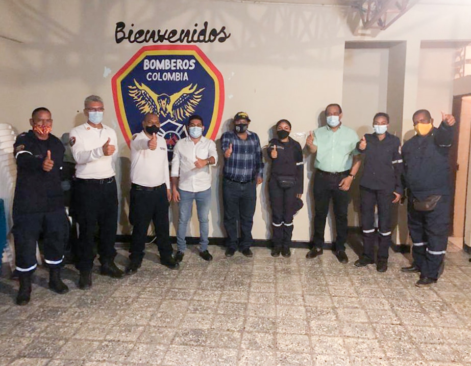 Bomberos del municipio de Distracción, con el Subdirector de Bomberos Colombia,