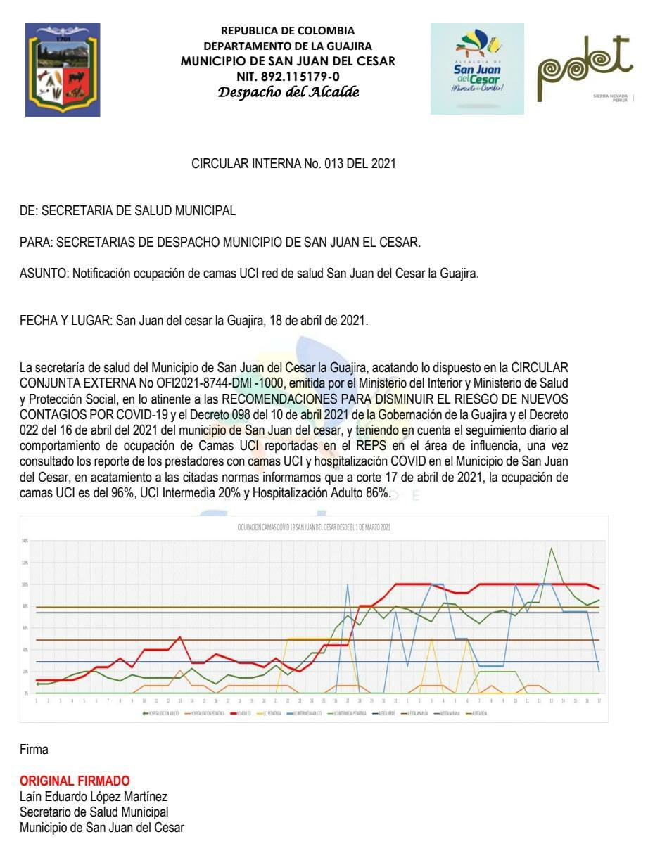 municipal orientada por el medico Laín López mediante la circular interna 0113