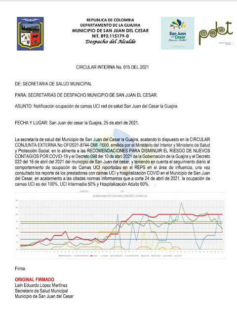 del Cesar a través de la Secretaría de Salud, en su circular 015 del 2021,