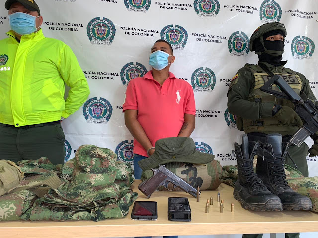 alias “adita”, con una pistola y uniformes de uso privativo de las fuerzas