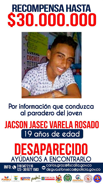 Fonseca: Alcaldia aumenta a 30 millones de pesos recompensa por información del joven desaparecido