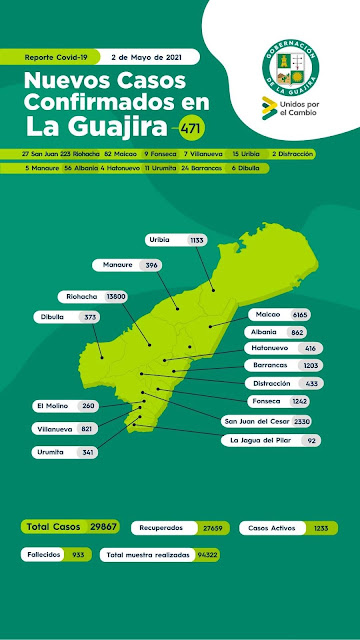 de La Guajira, de los cuales 1101 están activos.