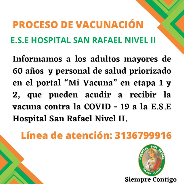 San Juan del Cesar: Hospital Regional San Rafael invita a personas mayores de 60 años a recibir su vacuna contra covid 19