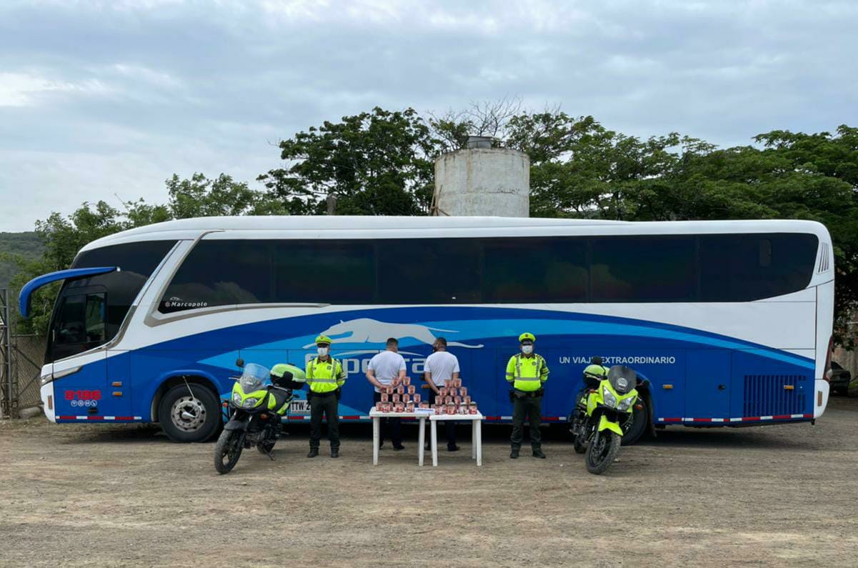 bodega del bus, hallaron una caja en cuyo interior tenían 36 latas que al