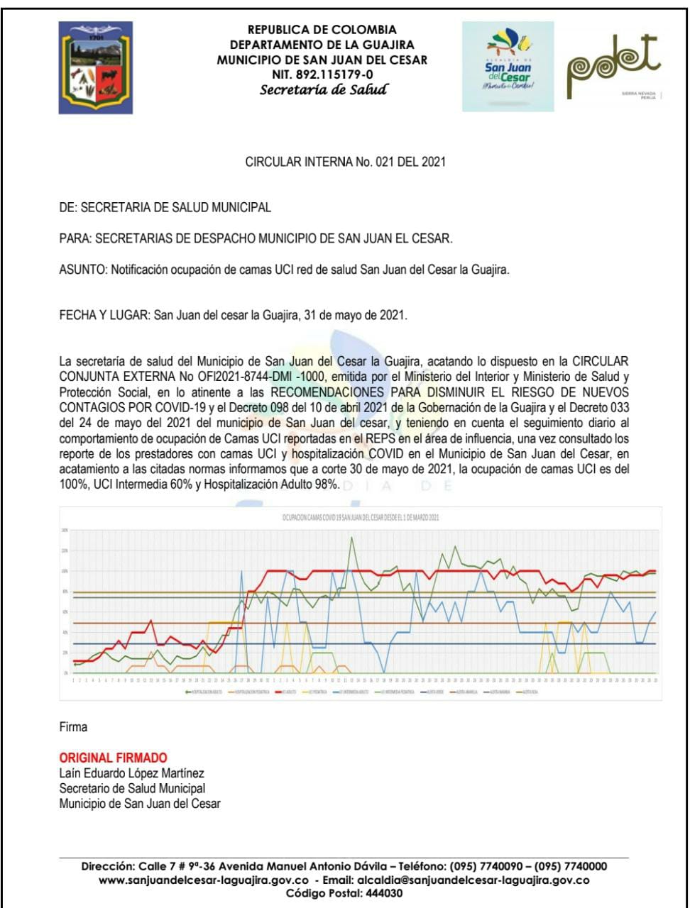 municipal de San Juan del Cesar a través de la Secretaría de Salud, en su