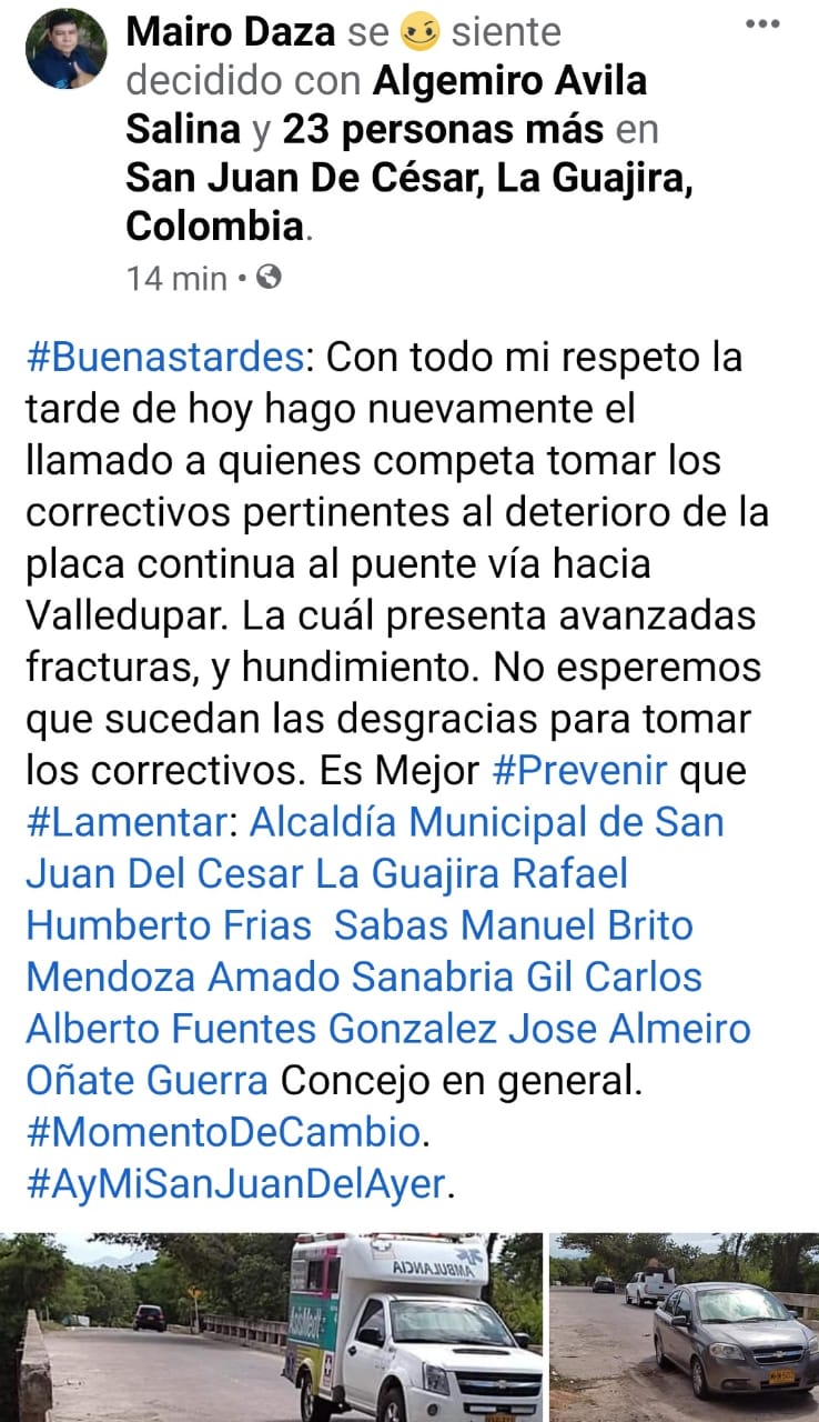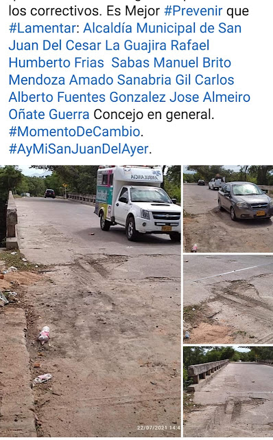 sobre peligro por deterioro del puente sobre el rio Cesar