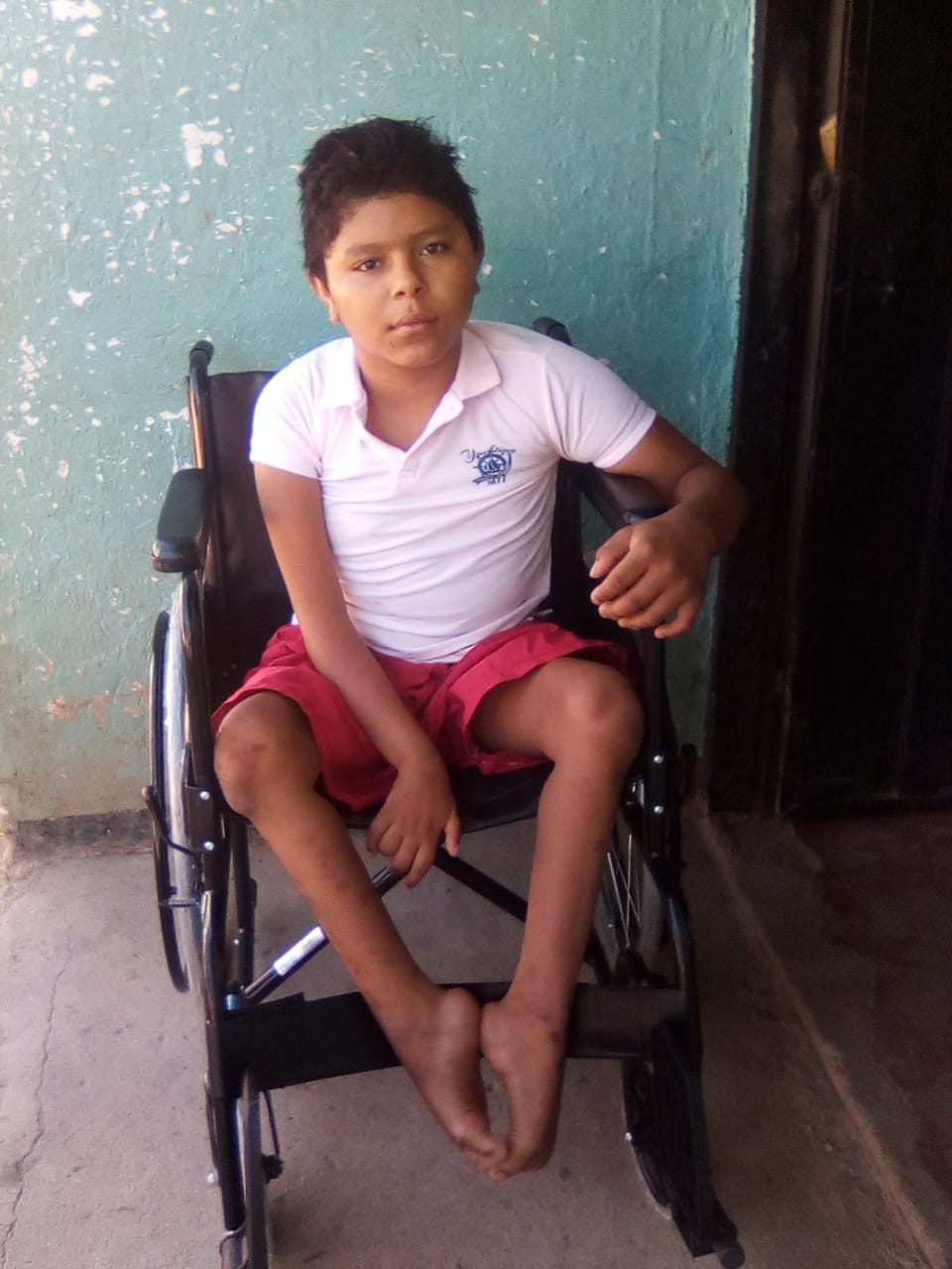 Solano regaló ayer lunes siete de julio una silla de ruedas al niño