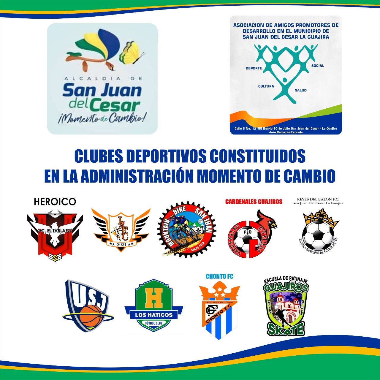 26 de agosto 10 clubes deportivos en las distintas modalidades, como fútbol , Ciclismo , patinaje , Voleibol ,