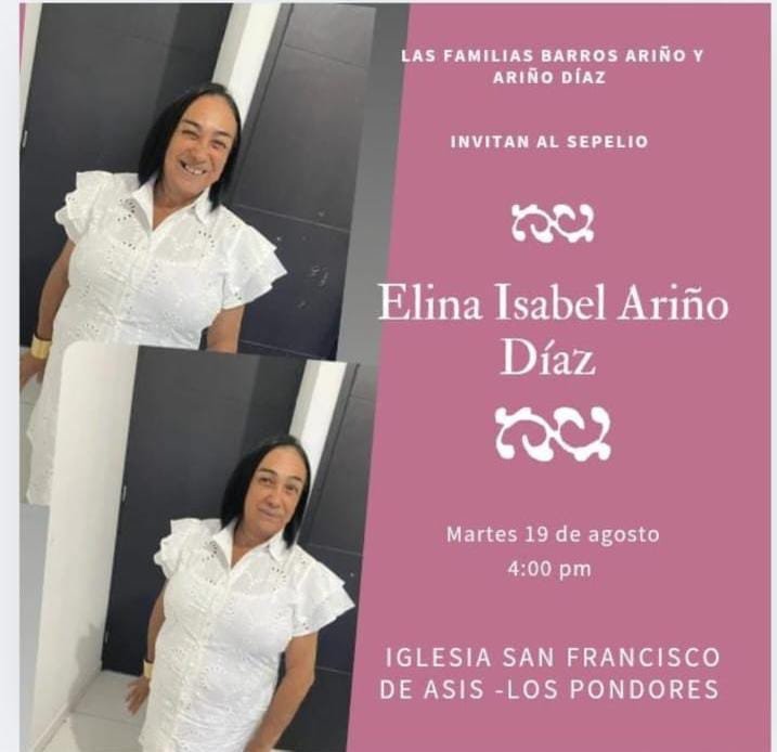 Las familias Barros Ariño y Ariño Díaz, invitan al sepelio de la profesora, Elina Isabel Ariño Díaz.