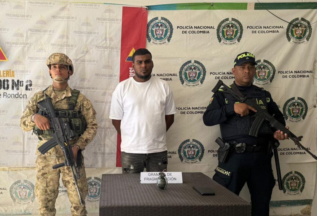 Durante el procedimiento, a este individuo le fue incautada una granada de fragmentación, elemento de uso exclusivo de las Fuerzas Armadas.