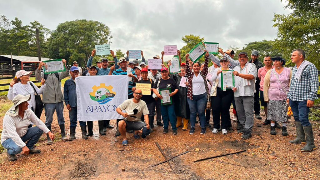 Las 213 familias beneficiarias de estos terrenos pertenecen a la Asociación de Productores Agroindustriales (Apayon), integrada por mujeres cabeza de hogar, jóvenes rurales y campesinos que durante décadas resistieron la violencia paramilitar o trabajaron como jornaleros y arrendatarios sin oportunidades de acceso a la tierra.