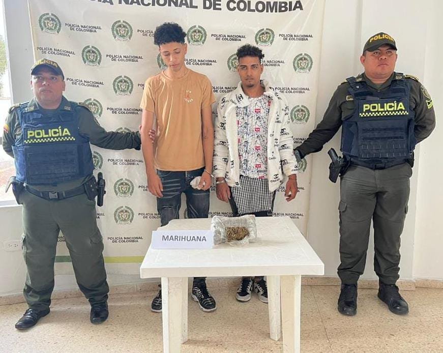 La Policía Nacional, en desarrollo de labores de patrullaje, registro y control, logró la captura en flagrancia de dos personas por el delito de tráfico, fabricación o porte de estupefacientes, en hechos registrados en el municipio de Villanueva.