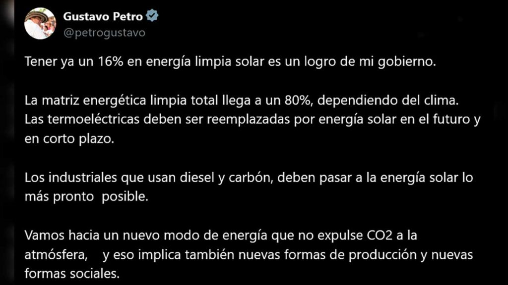 ‘Es un logro de mi Gobierno’: presidente Petro al celebrar que Colombia ya genera el 16% de su energía con fuentes solares y limpias