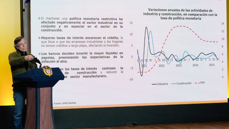 El mandatario, en la alocución, reiteró el llamado a la Junta Directiva del Banco de la República a que baje las tasas de interés, pues considera que el incremento solo beneficia al sector financiero y afecta a los más pobres.